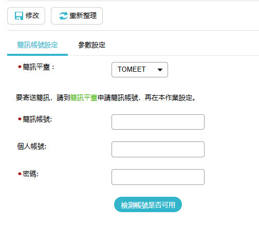 簡訊帳號資料請至