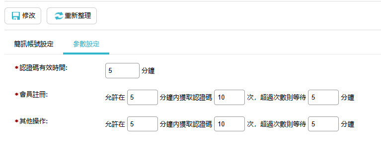 簡訊參數設定