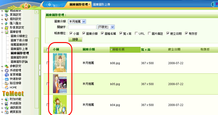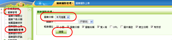 4.已上傳的圖檔可至圖庫管理-->圖庫圖形管理選擇步驟2所新增的分類,點選搜尋進行查詢。