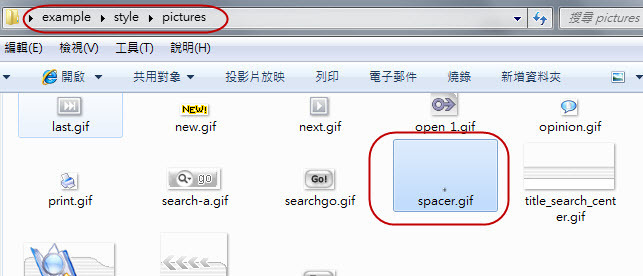 2.該檔案解壓縮後請至 style/ pictures 中找到 spacer.gif 檔案後,加到自定義版型中,重新打包成 zip 上傳即可。