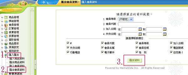 1.進入後台管理介面後,點選「匯入匯出」功能 |