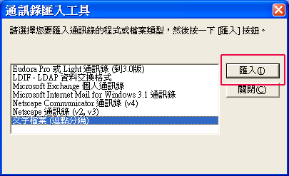 | 5. | 選擇「文字檔案」後,按下「匯入」鍵 |