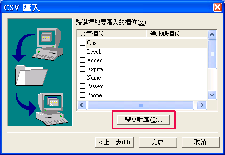 | 7. | 點選「變更對應」欄位 |