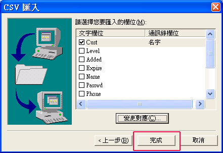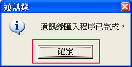 | 10. | 匯入程序完成後,按下「確定」鍵,即大功告成 |