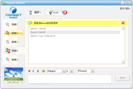 這時管理者左邊畫面將持續閃動(如下圖),按這個連線,開始與該Guest作文字交談。 |