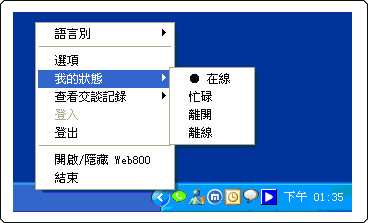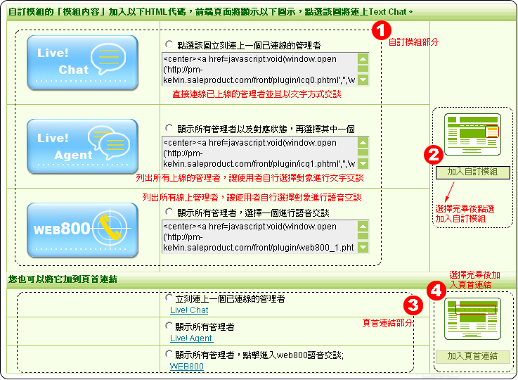 後台修改完畢回到前台後,便可以看見模組呈現的樣式,點擊WEB800網頁總機模組後便可以顯示目前上線管理者名單列表,直接點選欲交談的管理者即可進行線上溝通。 |
