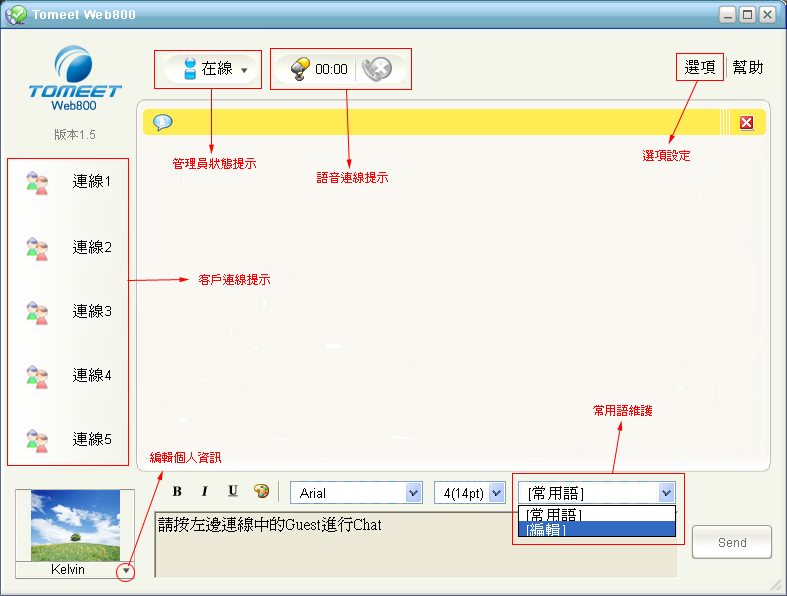 常用語將大大提高回覆的速度,如圖中位置2所示,按「編輯」,即可進入建立常用語; |
