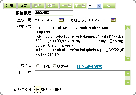 提示:模組內容會由系統自動帶入,不需要修改或編輯。 |