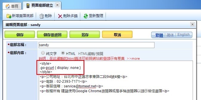 如何隱藏「手機版返回PC網頁」字樣