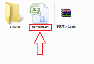 請將原始檔名重新命名為ptimport.xml或ptimport.csv,再重新與pictures資料夾壓縮成一個zip檔上傳於後台 |