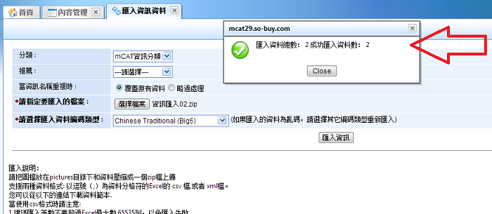 調整為正確的原始檔名,即可成功匯入資訊資料 |
