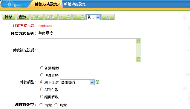 | ※需確認後台是否有華南銀行線上刷卡,如有此串接項目並提出申請後方才進行以下操作 . | |