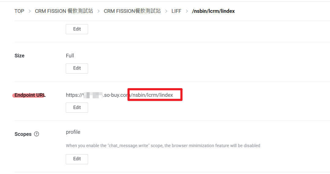 請修改 liff endpoint 為 nsbin/lcrm/lindex