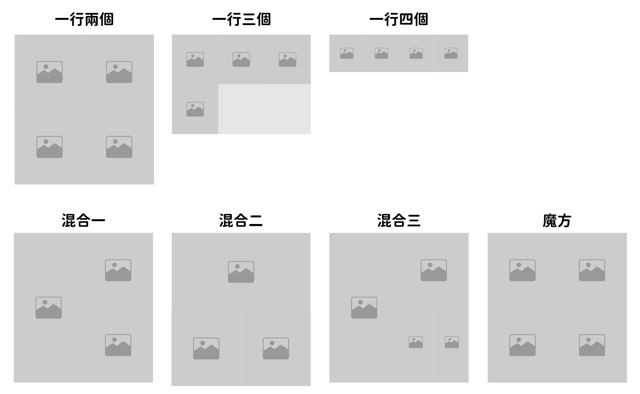 多組圖片同時展示,有多項組合形式